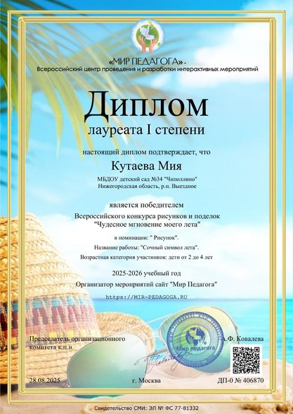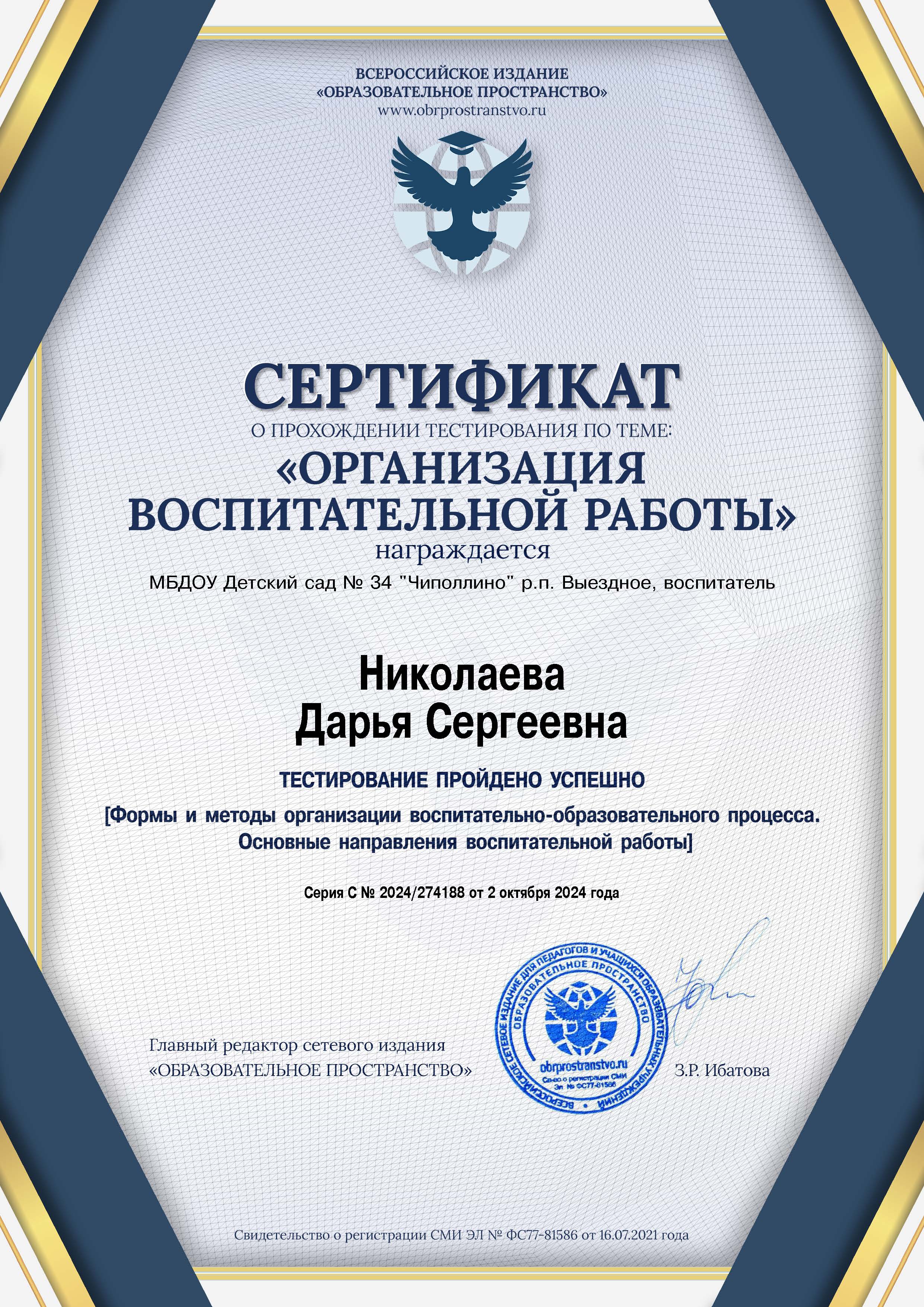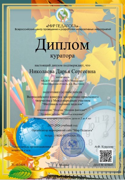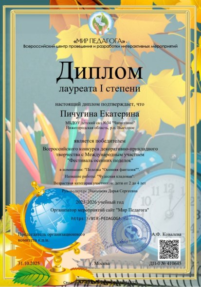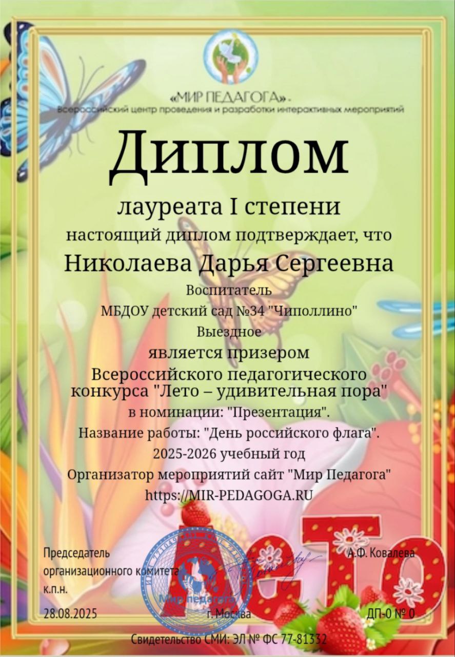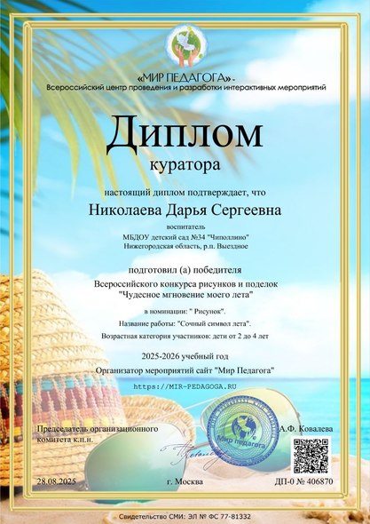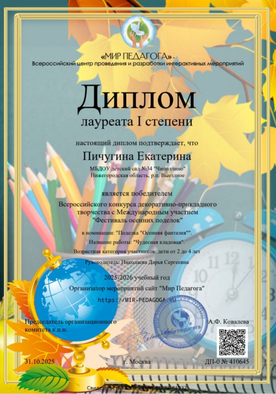 Воспитатель МБДОУ д/с № 34 "Чиполлино" р.п. Выездное г.о.г. Арзамас